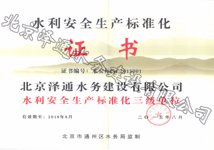 水利安全生產(chǎn)標(biāo)準(zhǔn)化證書(shū)