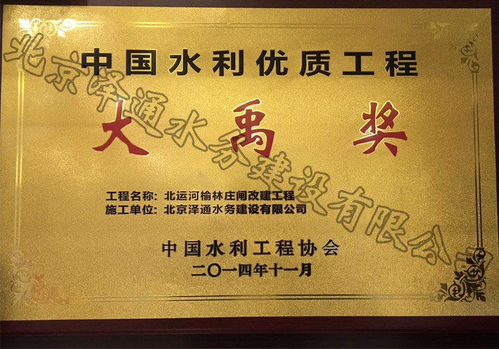 2014年中國水利優(yōu)質(zhì)工程大禹獎